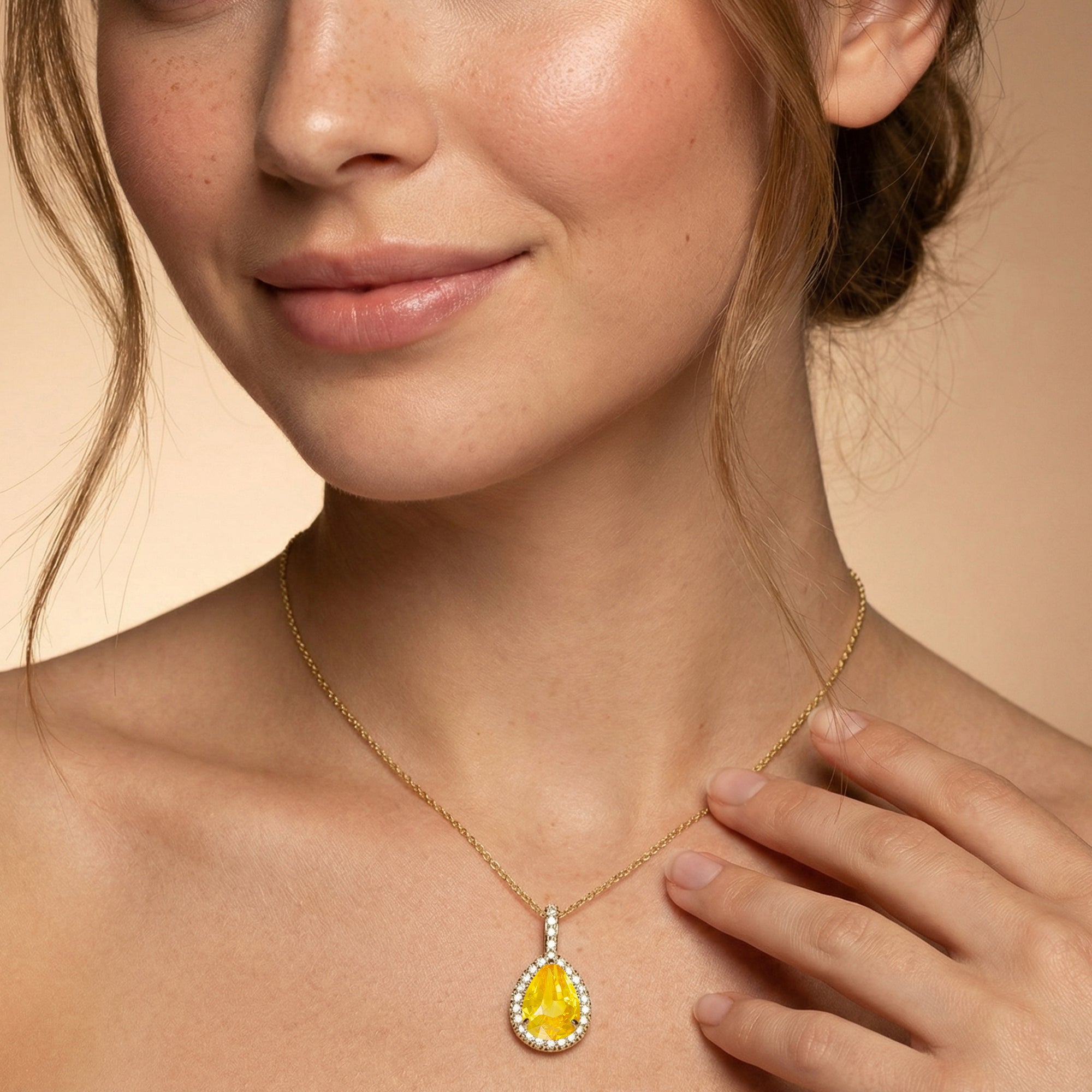 Yellow Sapphire Teardrop Pendant with Diamond Halo