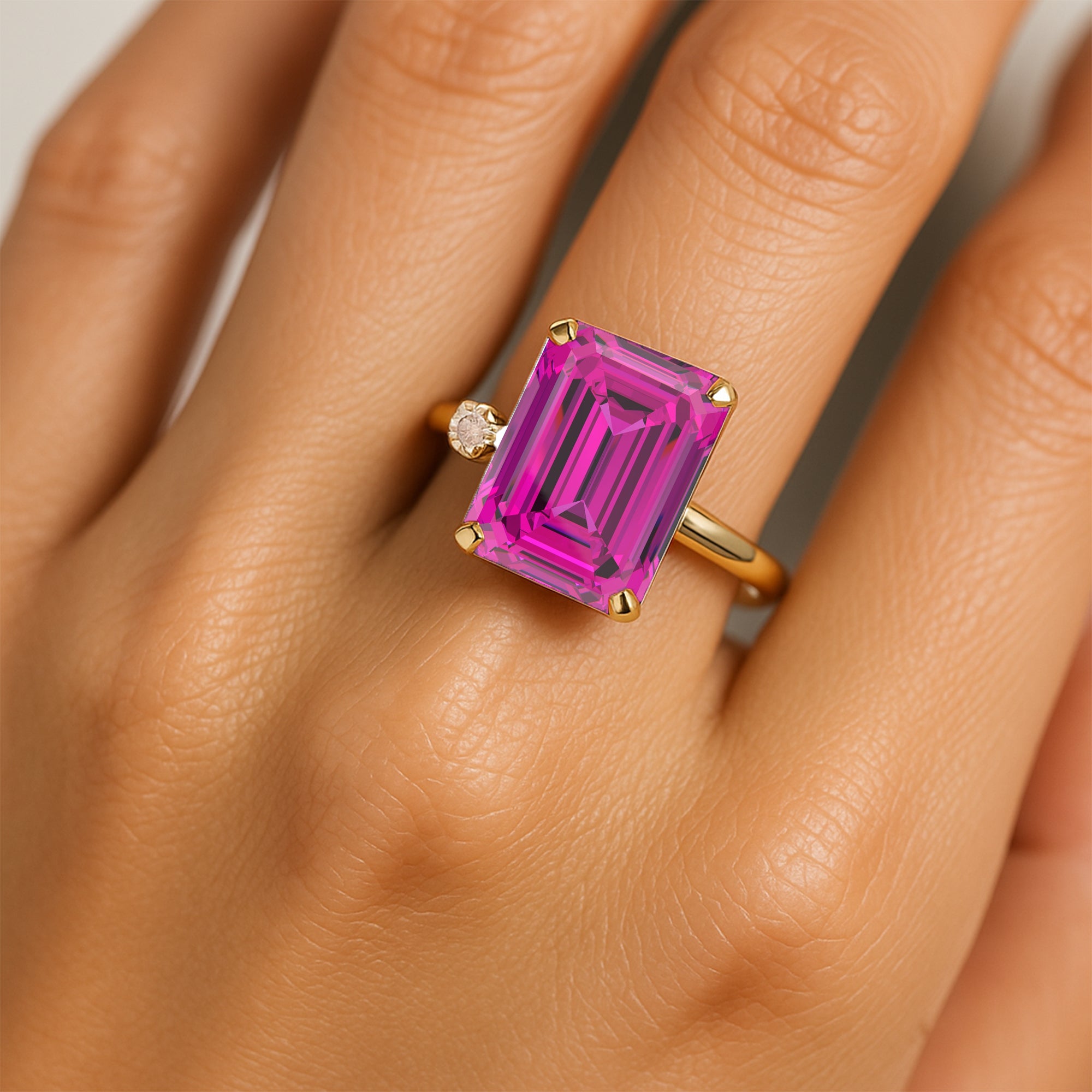 Emerald Shaped Pink Sapphire with 3mm Accent Solitaire Engagement Ring
