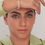 Expertly crafted with stunning diamond accents, the Clover Style Diamond Flower Bracelet is a must-have for any jewelry lover. The option of this bracelet adds versatility to your wardrobe, while the timeless design and delicate diamond details elevate any outfit. Perfect for any occasion, this diamond bracelet is a true investment piece.