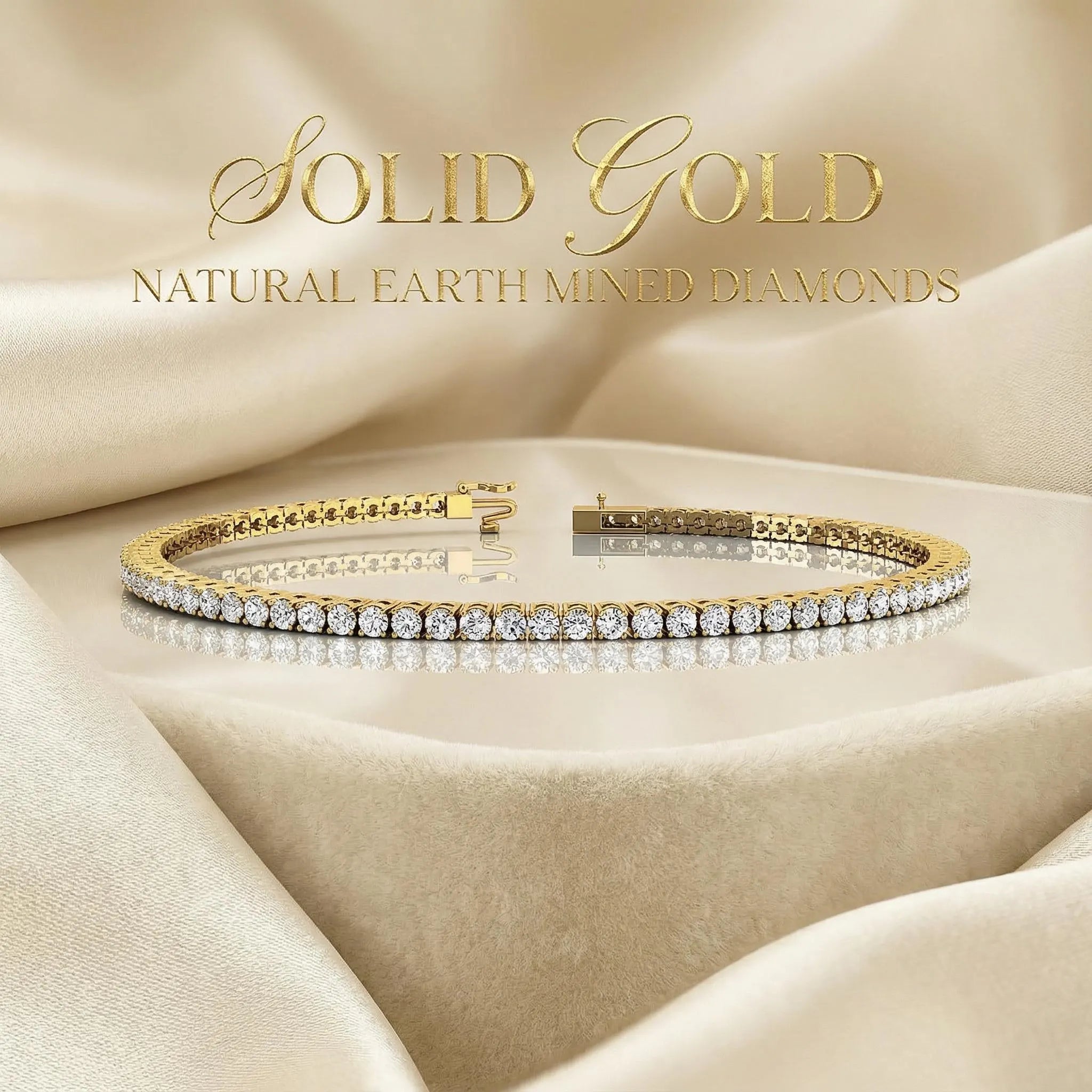 Tennis Bracelet 14k Solid Gold Real Diamond Sparkling Stackable Jewelry