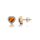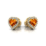 Heart Shaped Citrine Halo Diamond Stud Earrings - GeumJewels