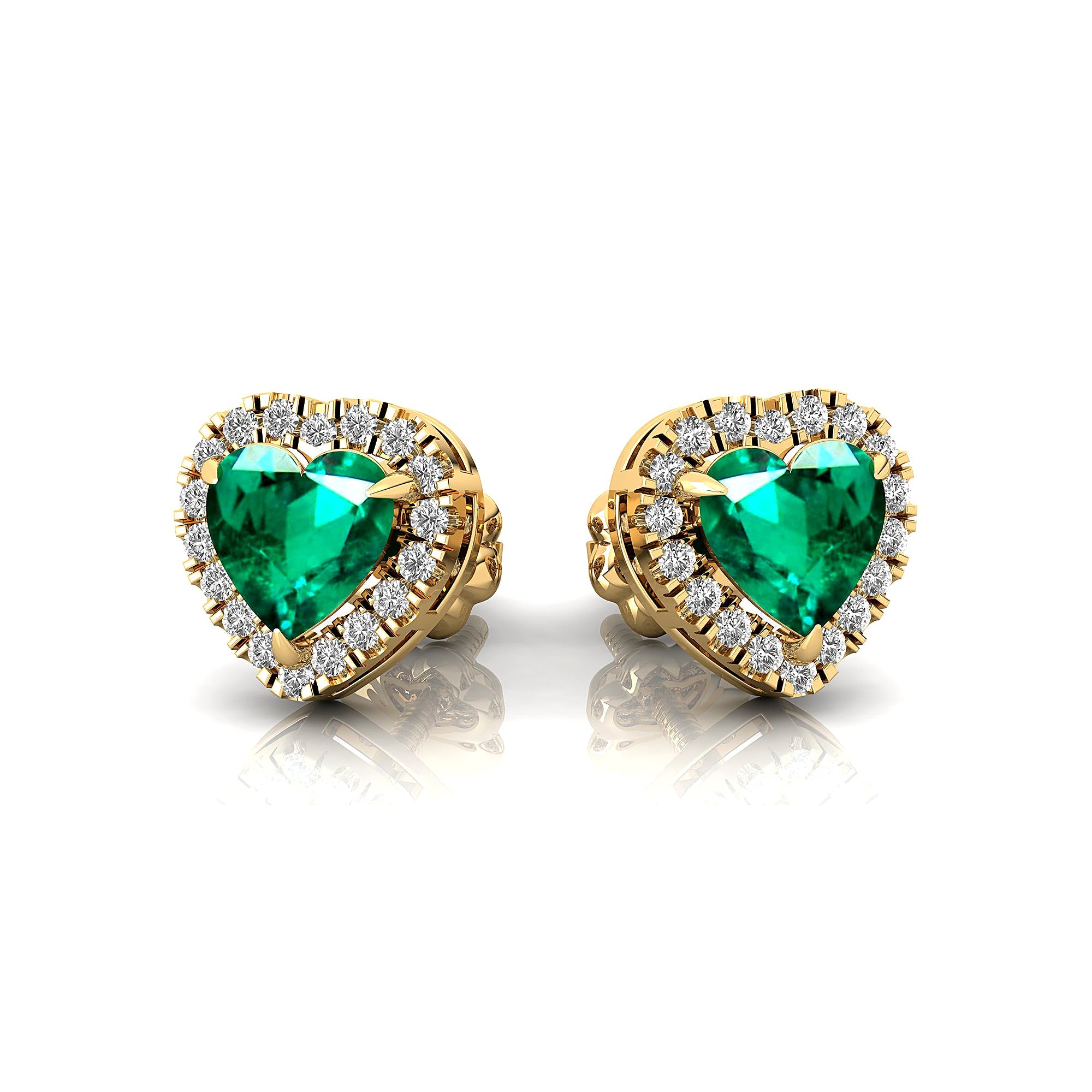 Heart Shaped Emerald Halo Diamond Stud Earrings
