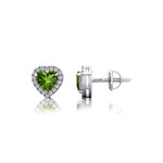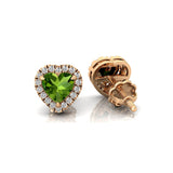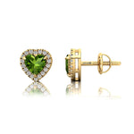 Heart Shaped Peridot Halo Diamond Stud Earrings