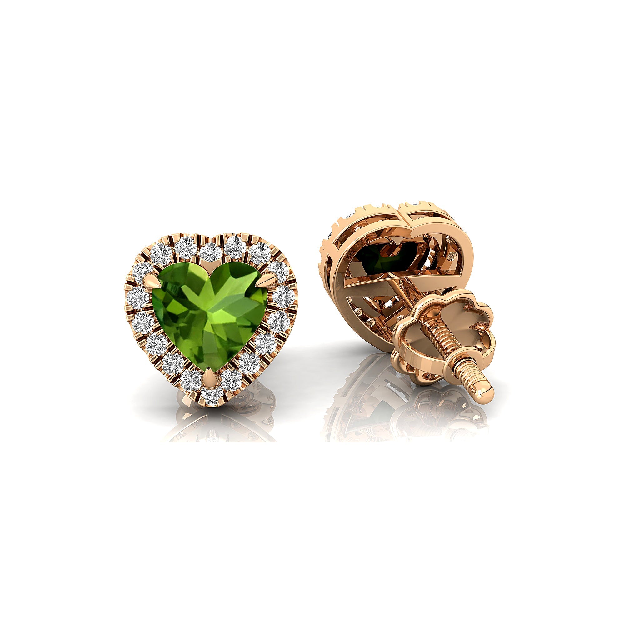 Heart Shaped Peridot Halo Diamond Stud Earrings - GeumJewels