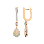 Lever Back Diamond Drop Earrings with Pear Cut Opal - GeumJewels