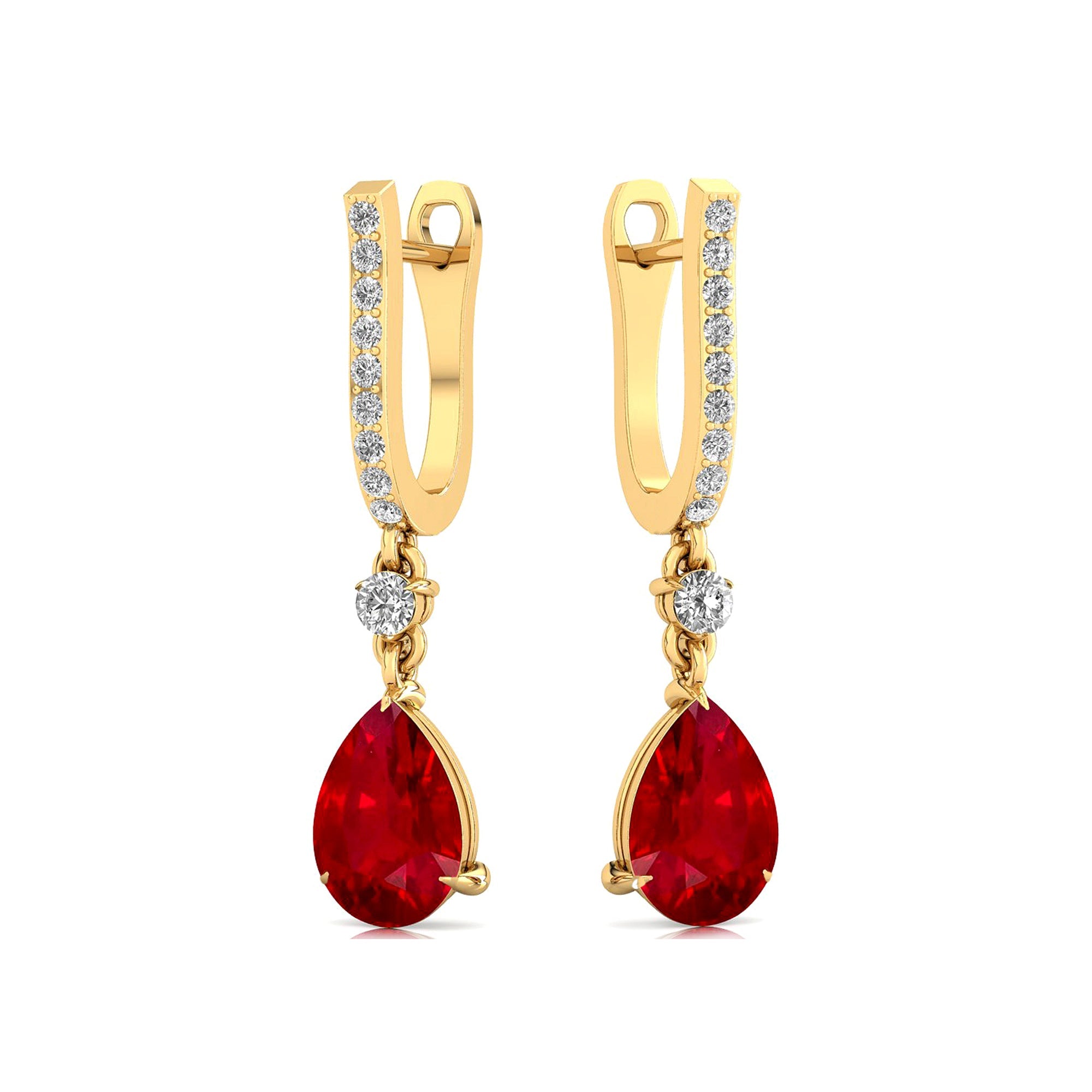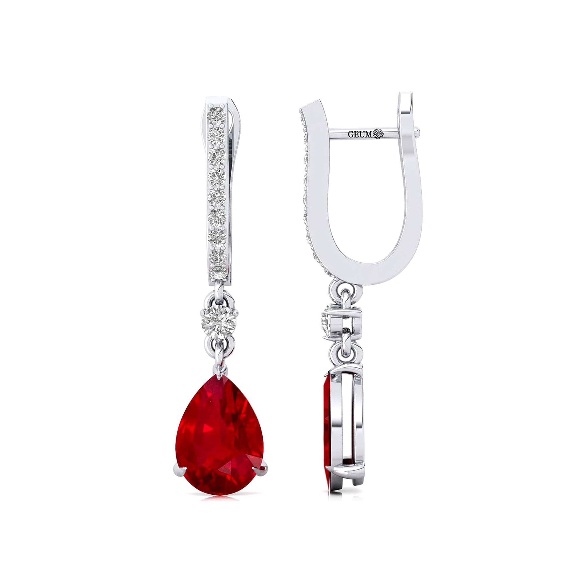 Lever Back Diamond Drop Earrings with Pear Cut Ruby - GeumJewels