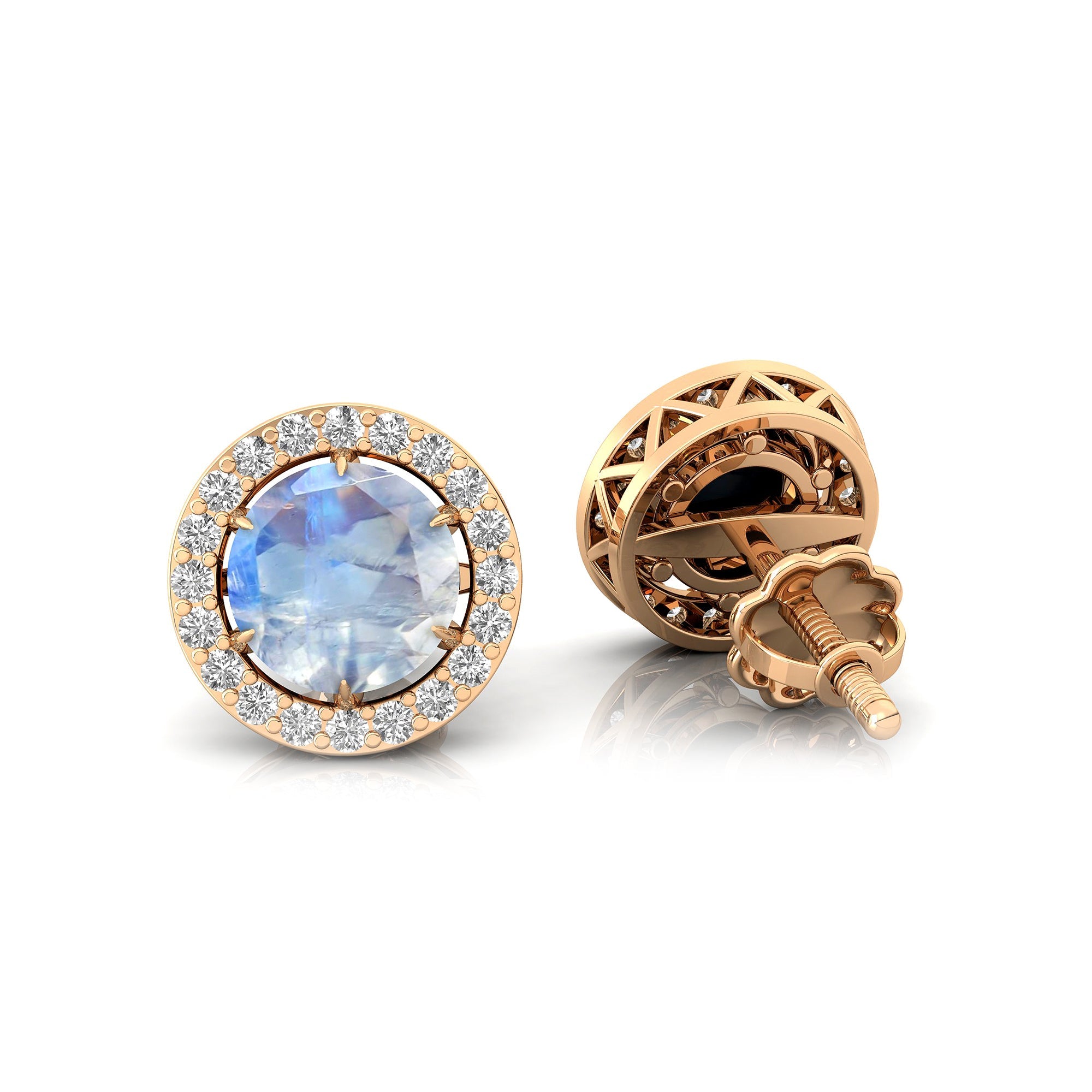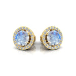 Round Solitaire Moonstone Halo Diamond Stud Earrings