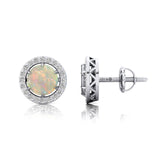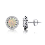 Round Solitaire Opal Halo Diamond Stud Earrings