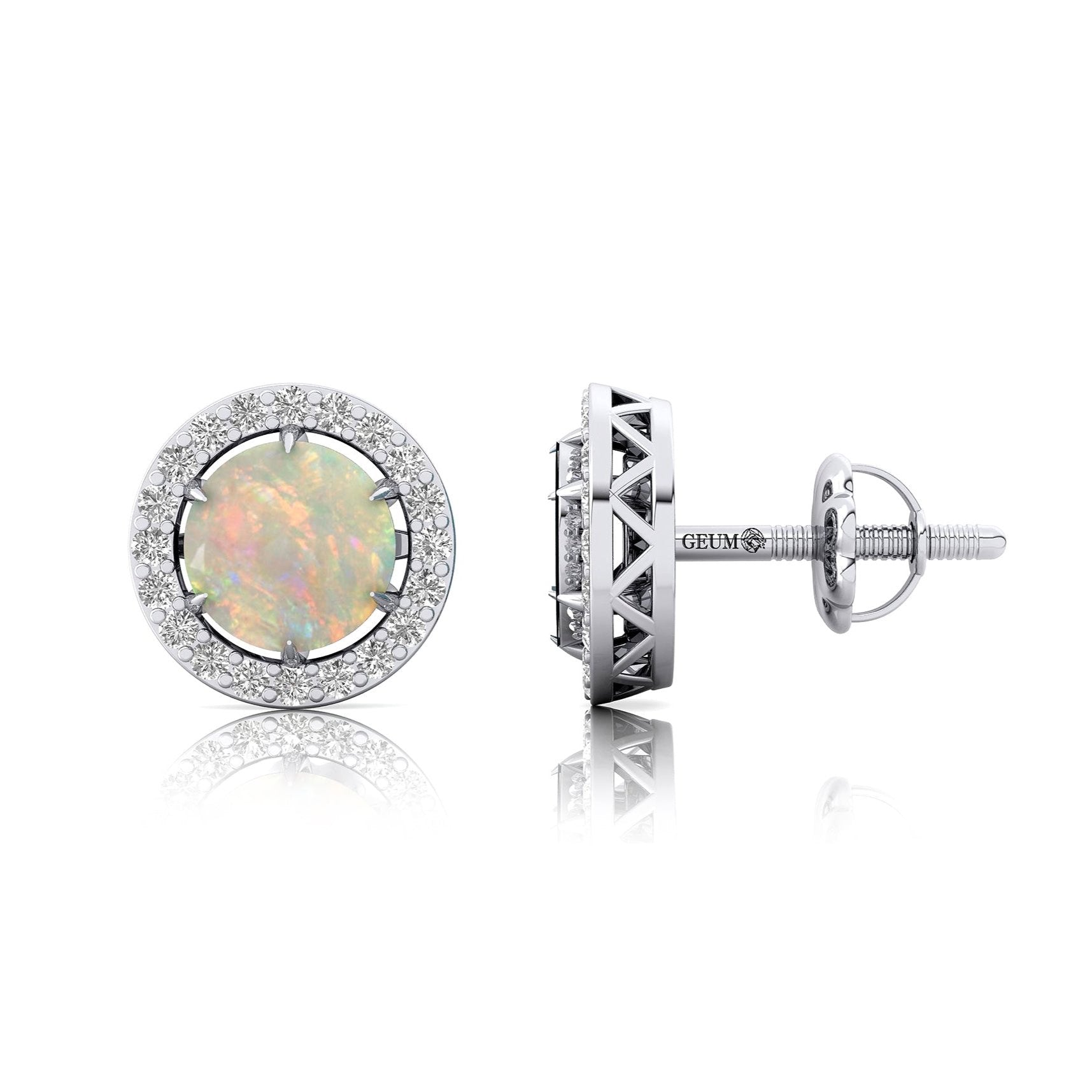 Round Solitaire Opal Halo Diamond Stud Earrings - GeumJewels