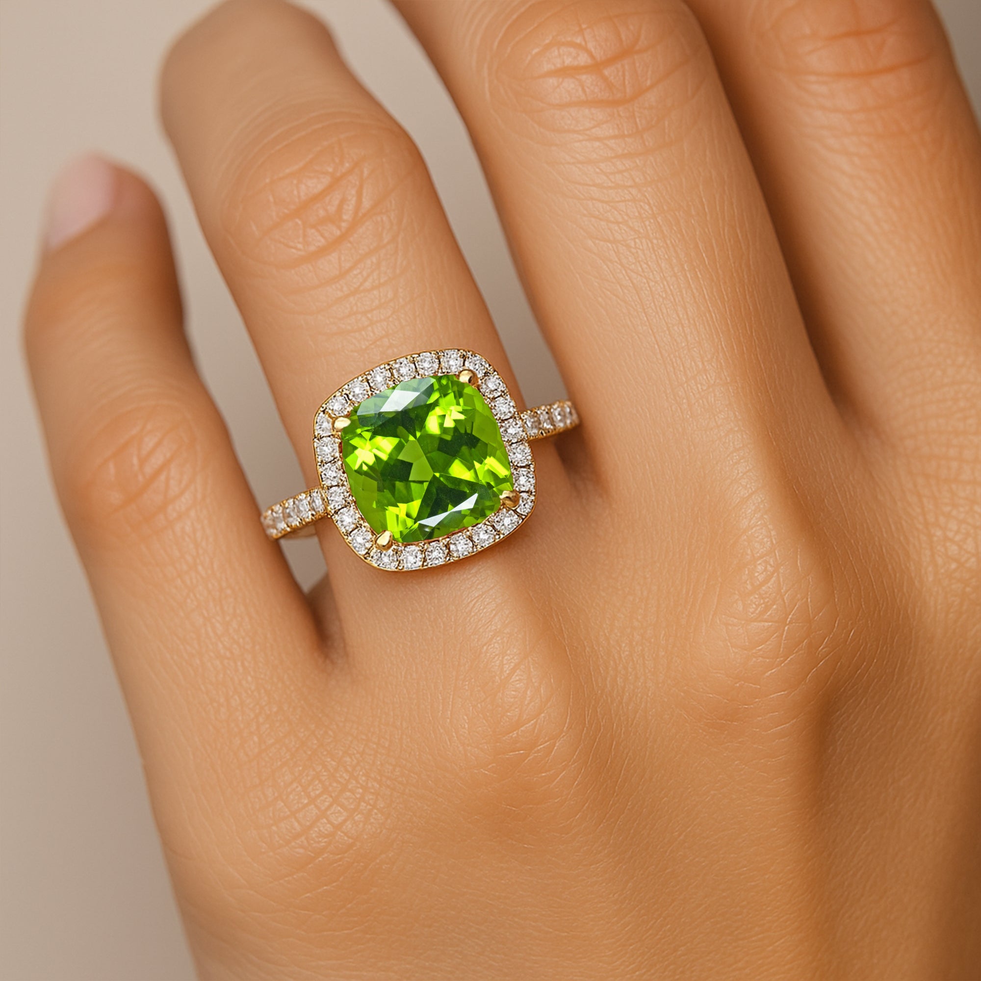 Halo Diamond Engagement Ring with Cushion Cut Peridot