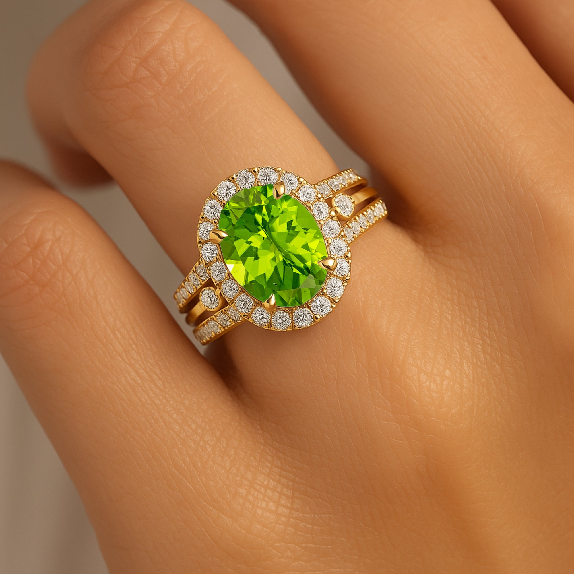 Solitaire Oval Peridot Split Shank Diamond Engagement Ring