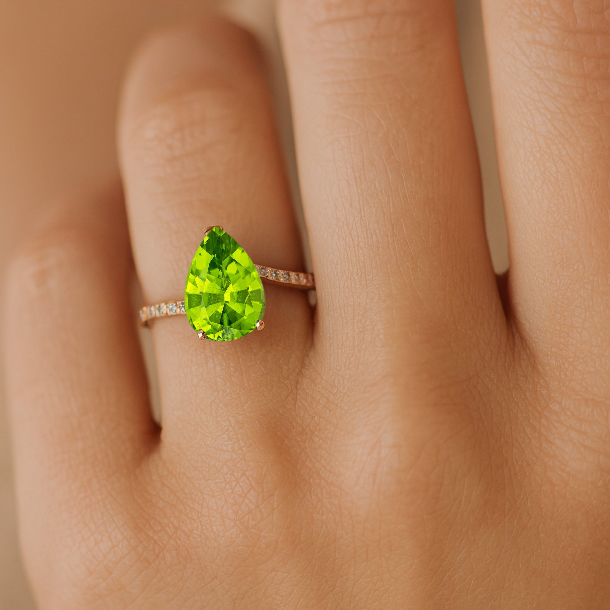 Classic Pear Shaped Peridot Halo Diamond Engagement Ring