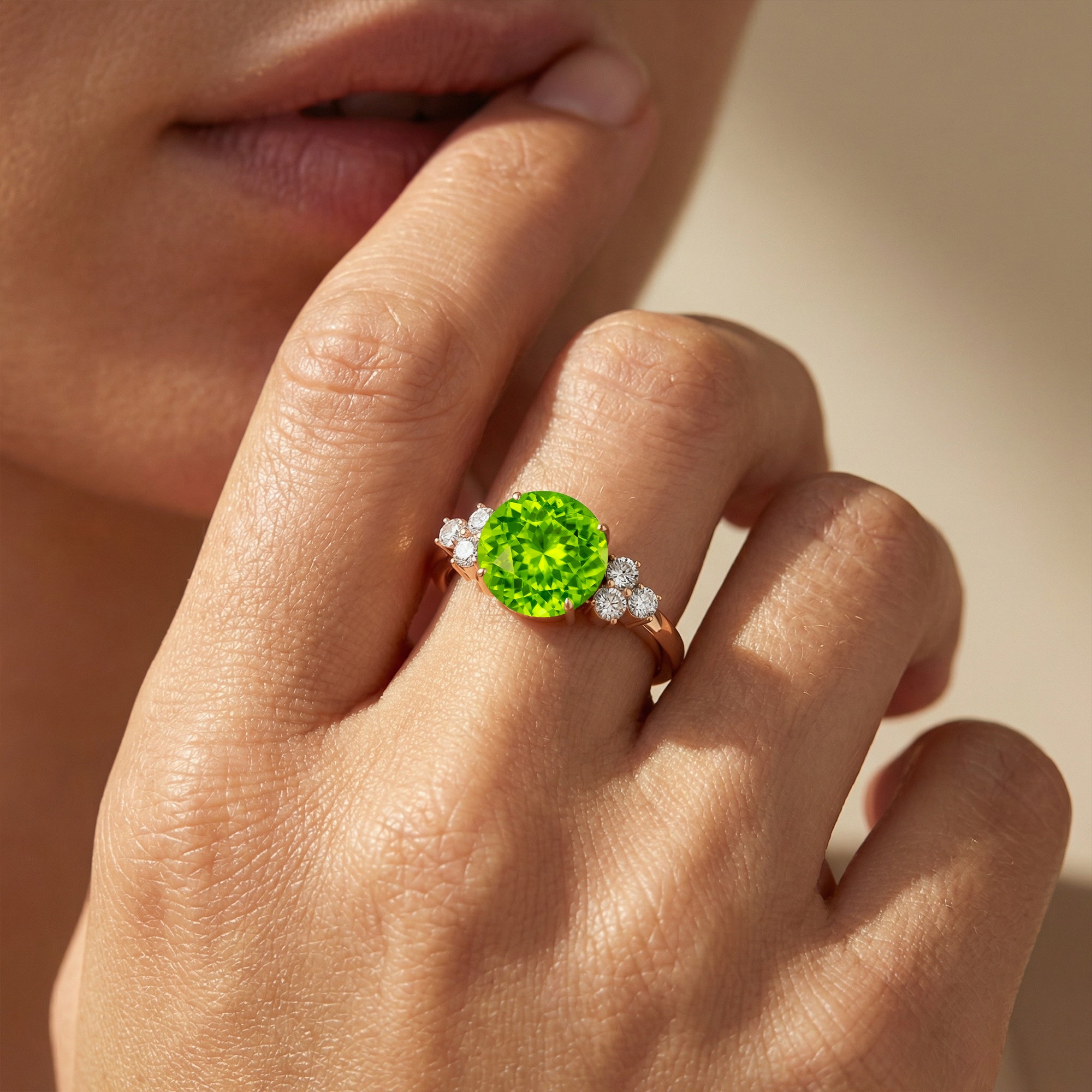 Trio Diamond Engagement Ring with Round Solitaire Peridot