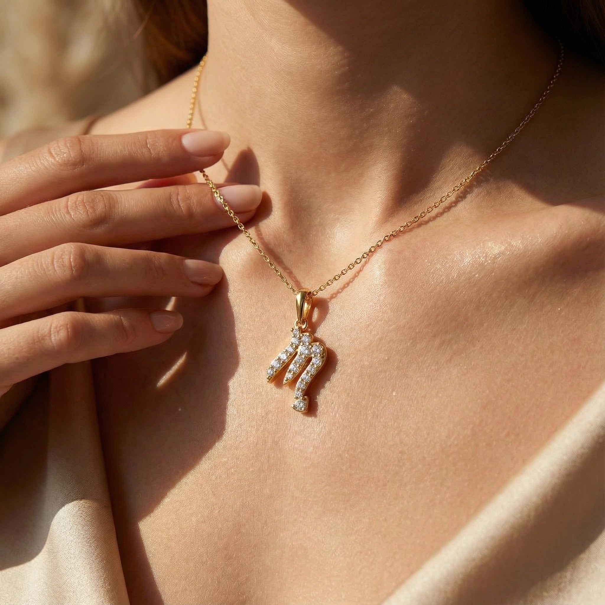 Sleek Diamond Scorpio Zodiac Pendant Necklace, Handcrafted Solid 18Kt Gold Scorpio Pendant - GeumJewels