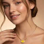 Emerald Cut Yellow Sapphire Halo Set Diamond Necklace - GeumJewels