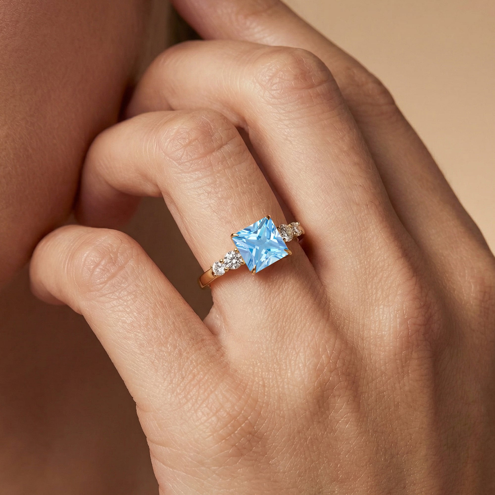 Princess Cut Aquamarine Graduating Accent Diamond Ring