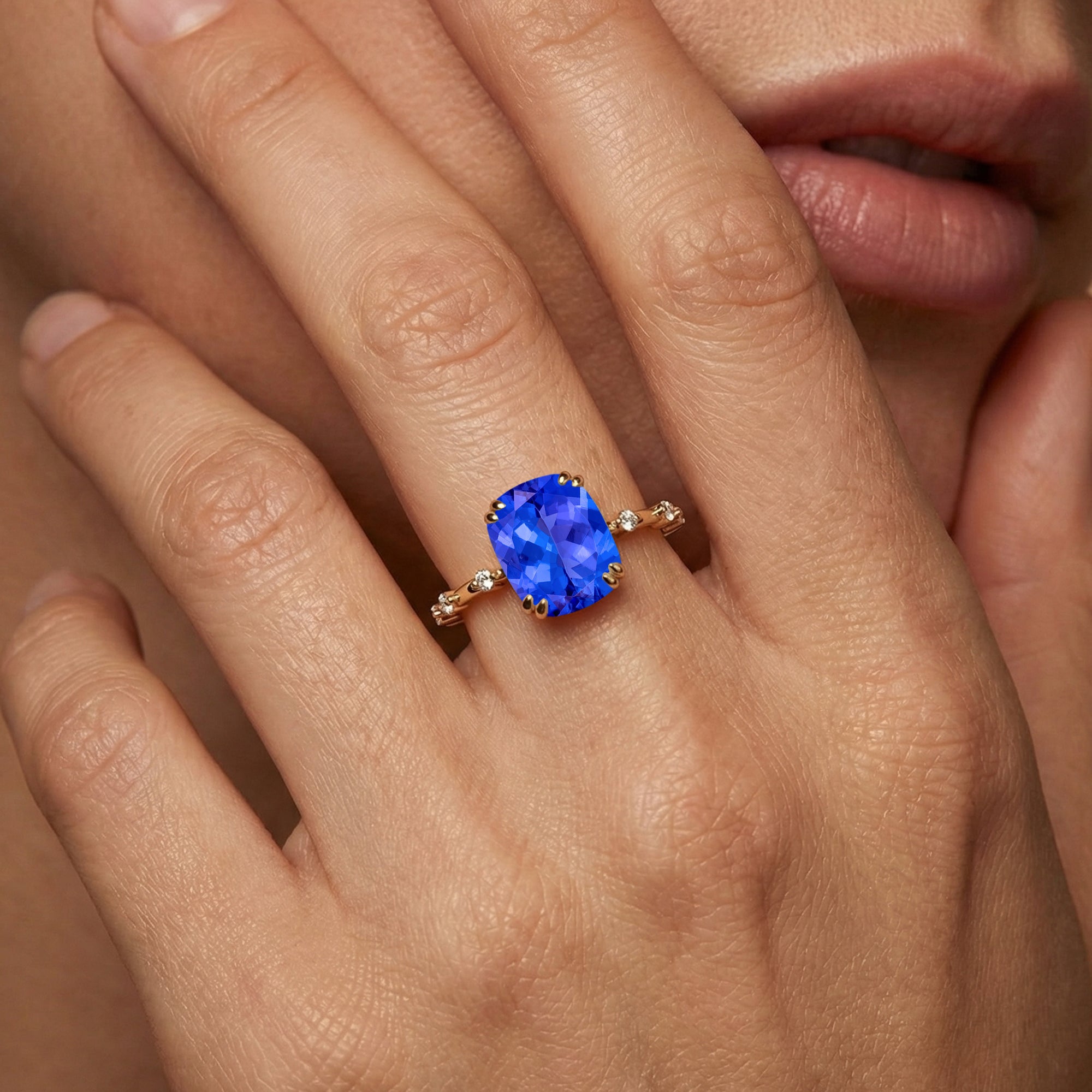 Cushion Cut Tanzanite Engagement Ring with Distant Diamond Band