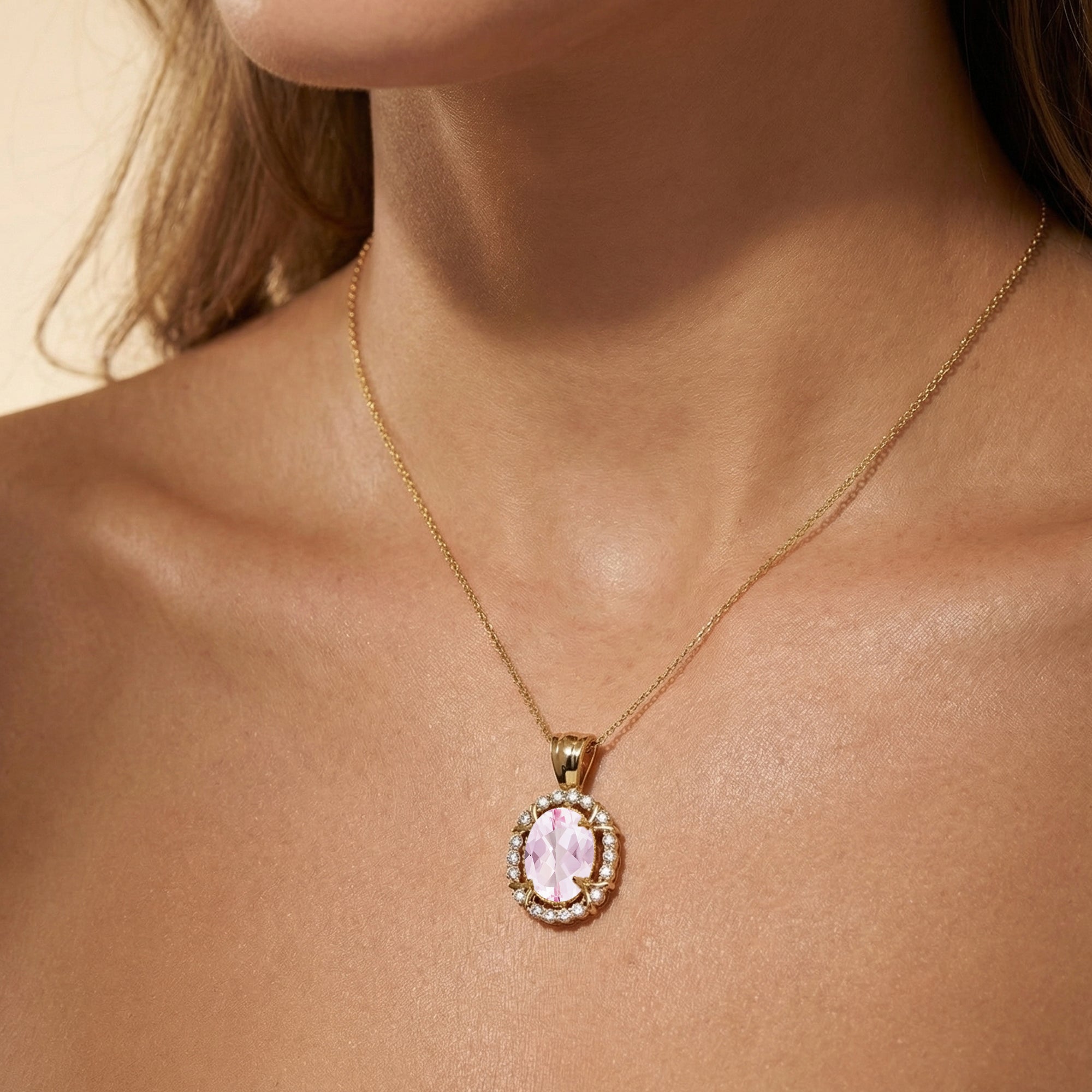 Vintage Style Oval Shaped Morganite Halo Set with Diamond Accents