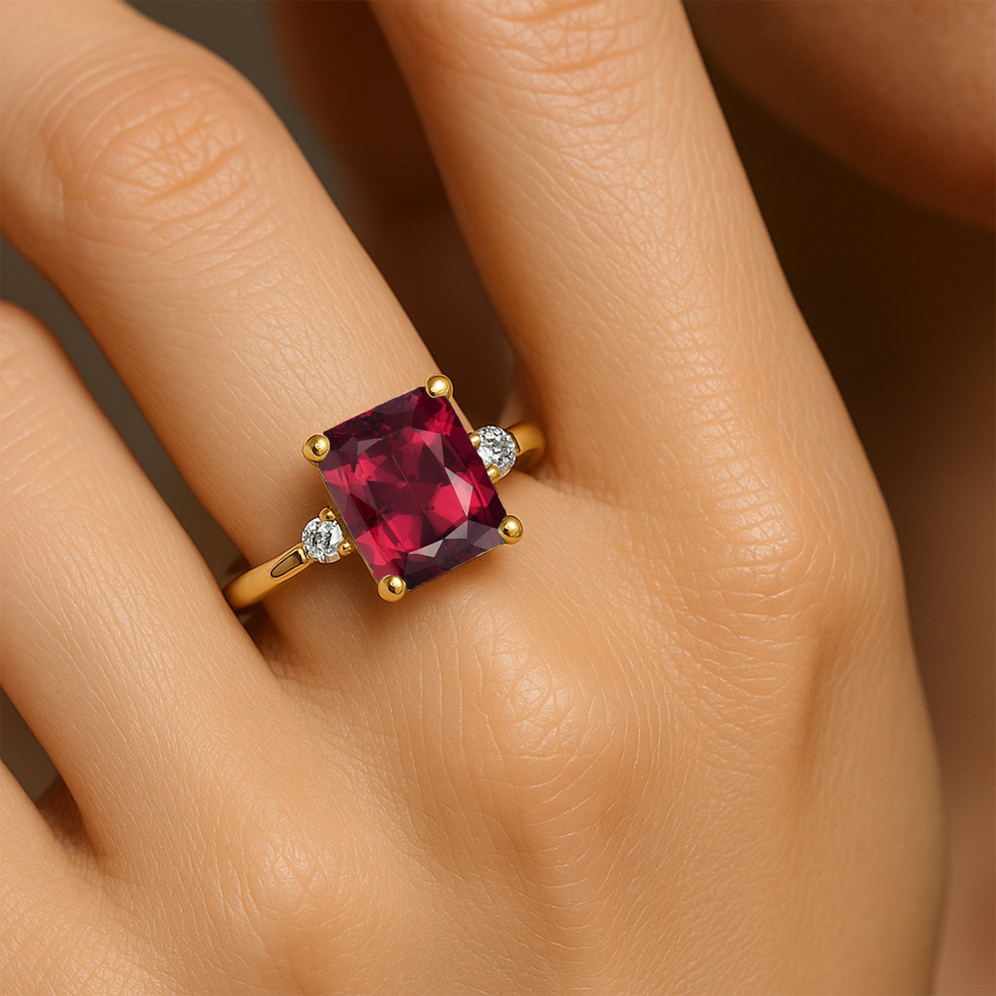Emerald Shaped Garnet with 3mm Accent Solitaire Engagement Ring