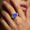 Classic Dome Shaped Diamond Oval Cut Blue Sapphire Ring - GeumJewels