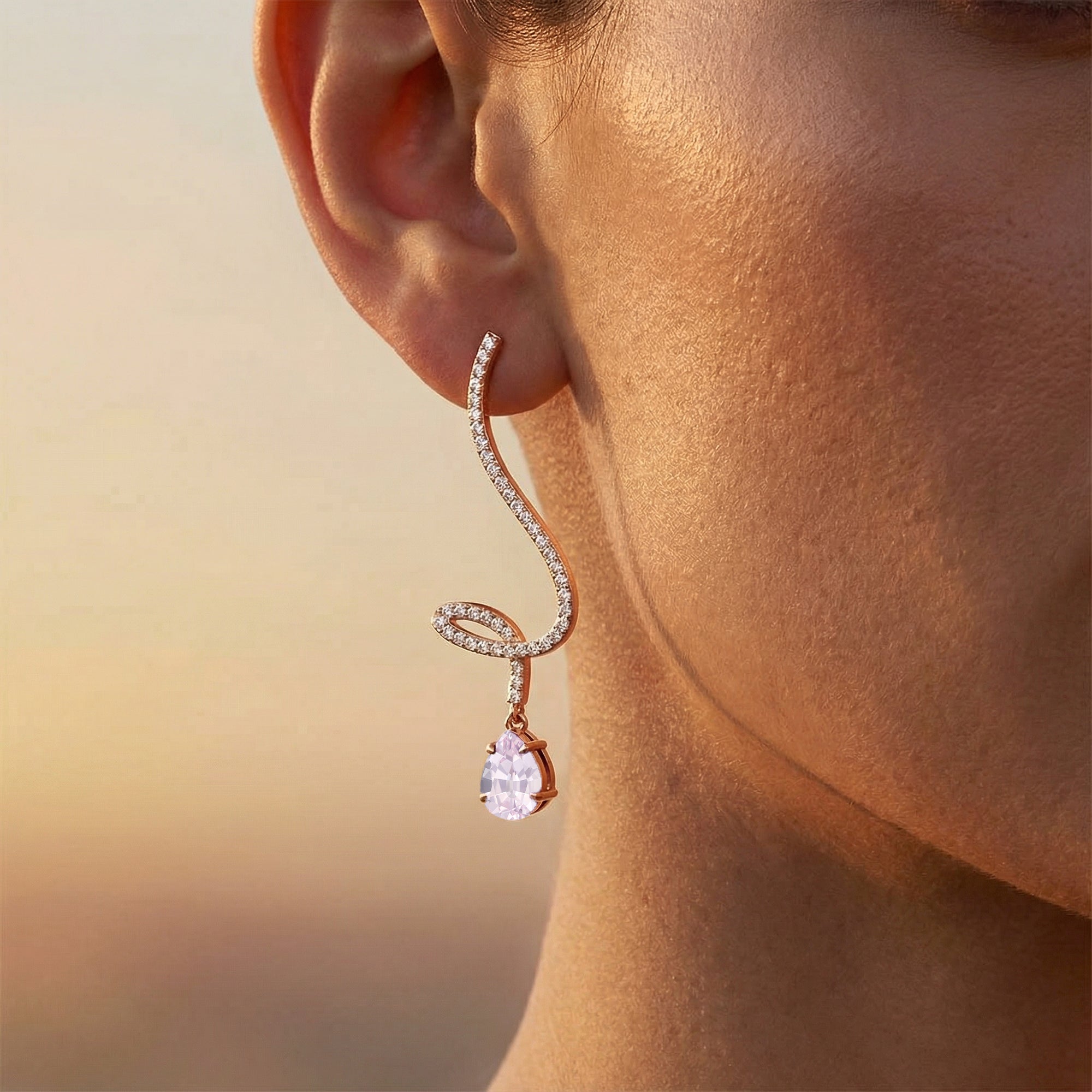 Elegant Spiral Teardrop Morganite Diamond Drop Earrings - GeumJewels