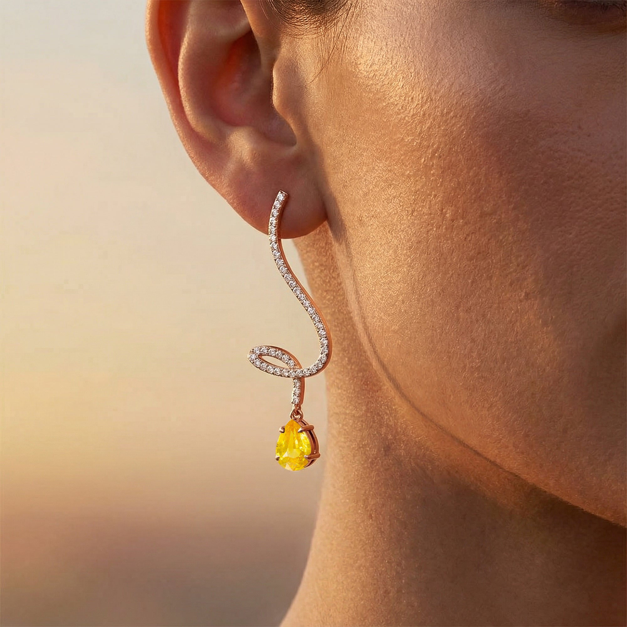 Elegant Spiral Teardrop Yellow Sapphire Diamond Drop Earrings
