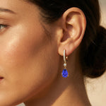Lever Back Diamond Drop Earrings with Pear Cut Tanzanite - GeumJewels