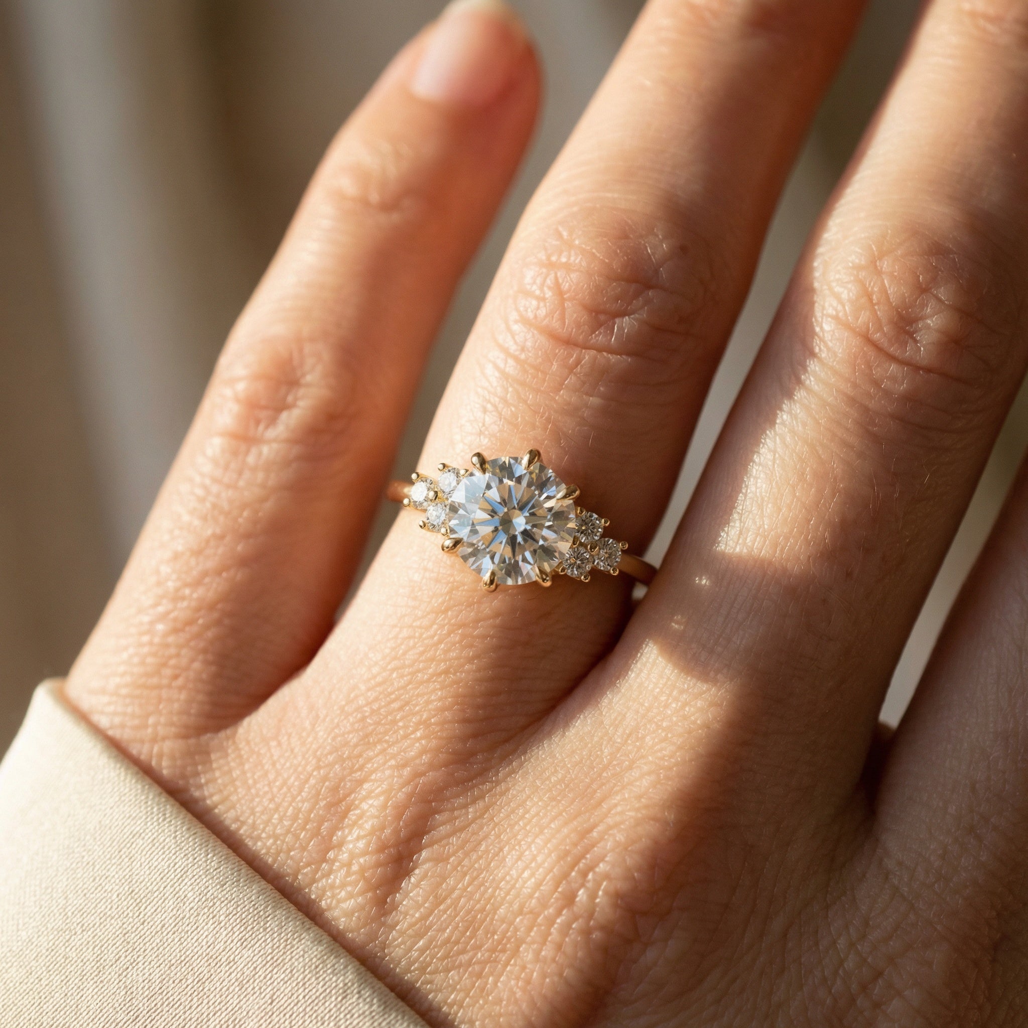 Trio Diamant-Verlobungsring mit rundem Solitär Labor-Diamanten