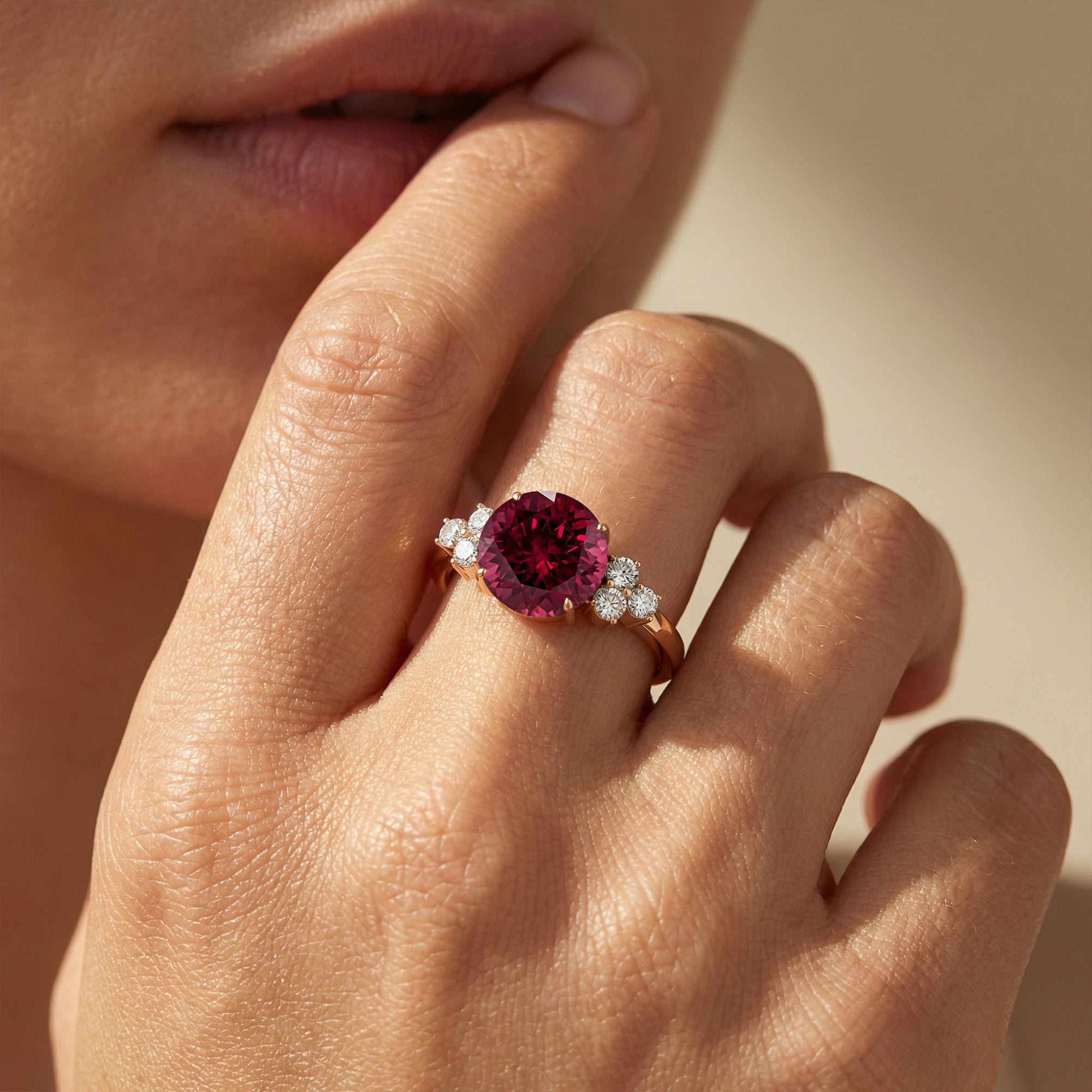 Trio-Verlobungsring mit rundem Solitär-Granat