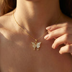 18K Solid Gold Natural Diamond Butterfly Pendant - GeumJewels