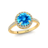 Classic Round Halo Diamonds with Solitaire Swiss Blue Topaz Engagement Ring - GeumJewels
