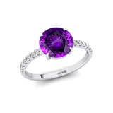 Classic Six Prong Round Solitaire Amethyst Ring with Accent Diamond Band - GeumJewels