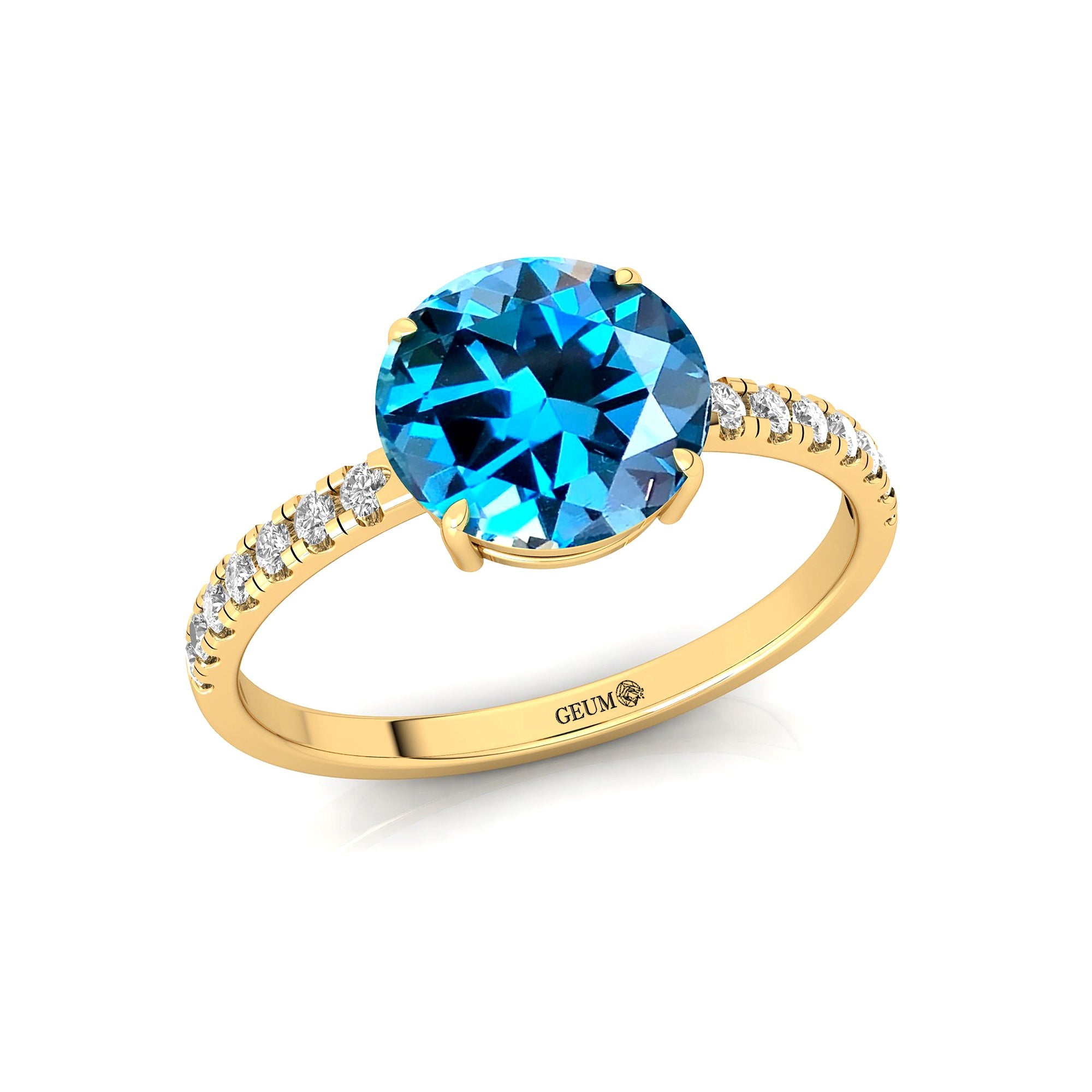 Classic Six Prong Round Solitaire London Blue Topaz Ring with Accent Diamond Band - GeumJewels