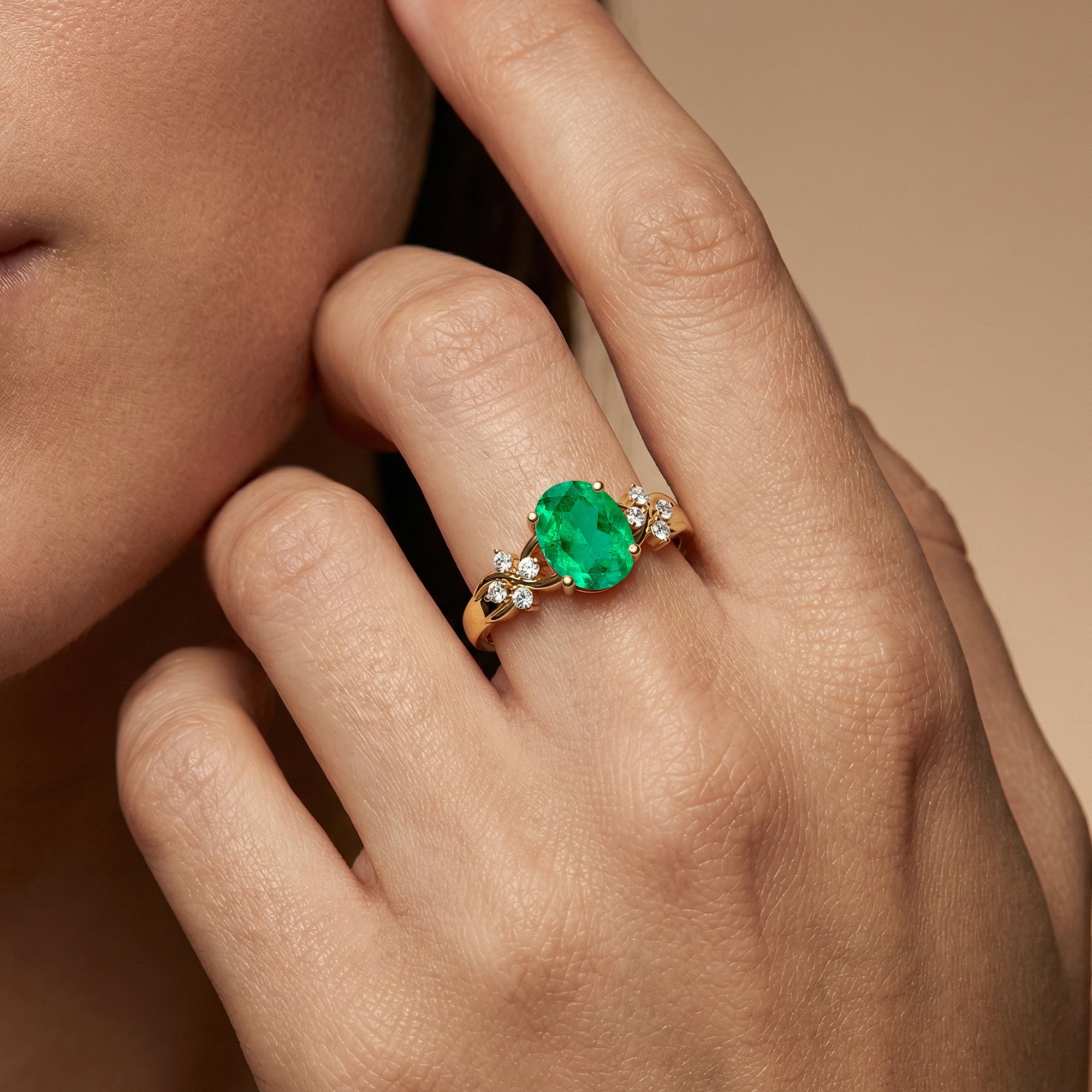 Criss Cross Diamond Ring with Oval Cut Emerald - GeumJewels