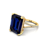 Emerald Cut Blue Sapphire Split Shank Engagement Ring with Diamonds