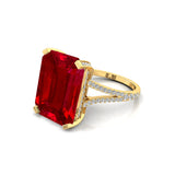 Emerald Cut Ruby Split Shank Engagement Ring with Diamonds