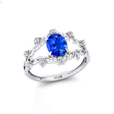 Flower Inspired Ring with Oval Shaped Blue Sapphire and Accent Diamonds - GeumJewels