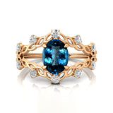 Introducing our stunning London Blue Topaz Anniversary Ring, inspired by the captivating Art Deco era! This London Topaz Ring is the epitome of elegance and sophistication, making it an exquisite choice for a bridal or engagement ring. Handcrafted with love and attention to detail, this diamond-adorned beauty is not just a promise ring, it's a symbol of eternal love and commitment. Designed for women who appreciate the finer things in life, this mesmerizing piece features an oval-cut topaz encased in a lustrous 18k rose gold band. With its timeless allure, this wedding ring set is sure to make a lasting impression. Embrace luxury and indulge in this truly dazzling masterpiece.