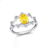 Flower Inspired Ring with Oval Shaped Yellow Sapphire and Accent Diamonds - GeumJewels