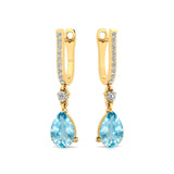 Lever Back Diamond Drop Earrings with Pear Cut Aquamarine - GeumJewels