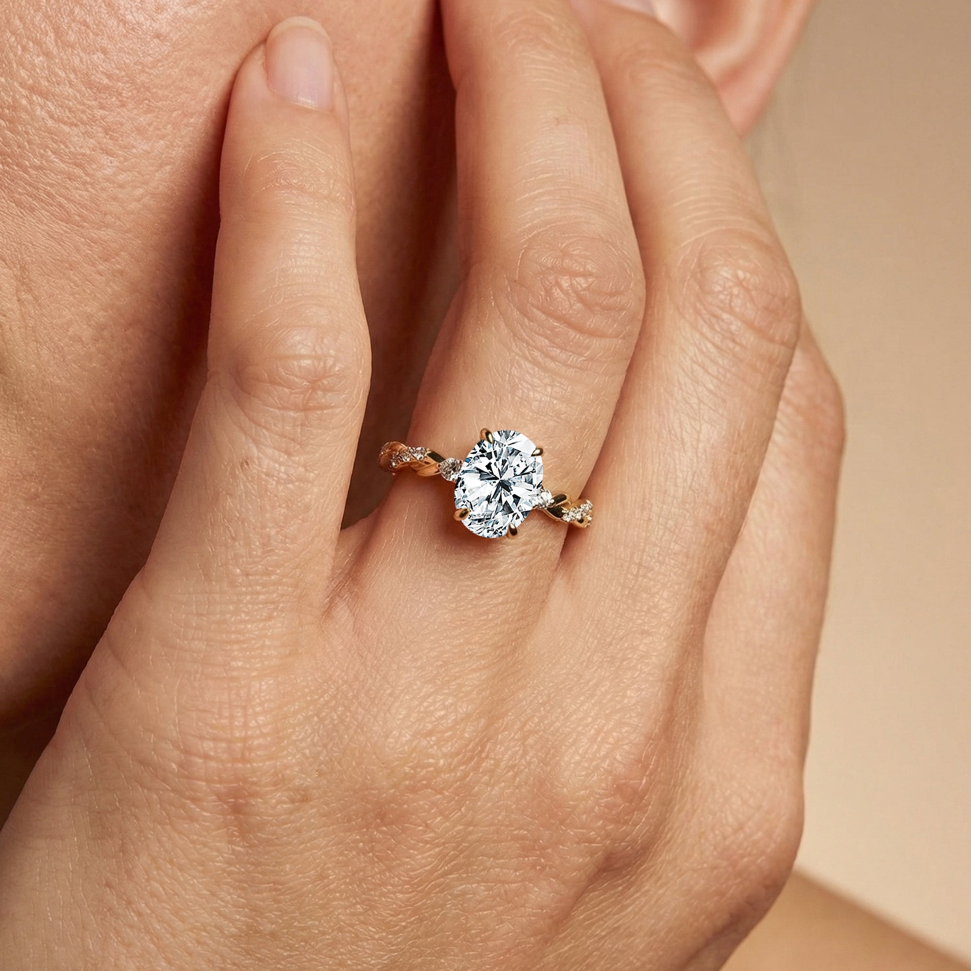 Oval Solitaire Lab Diamond Ring with Twisted Wire Diamond Band