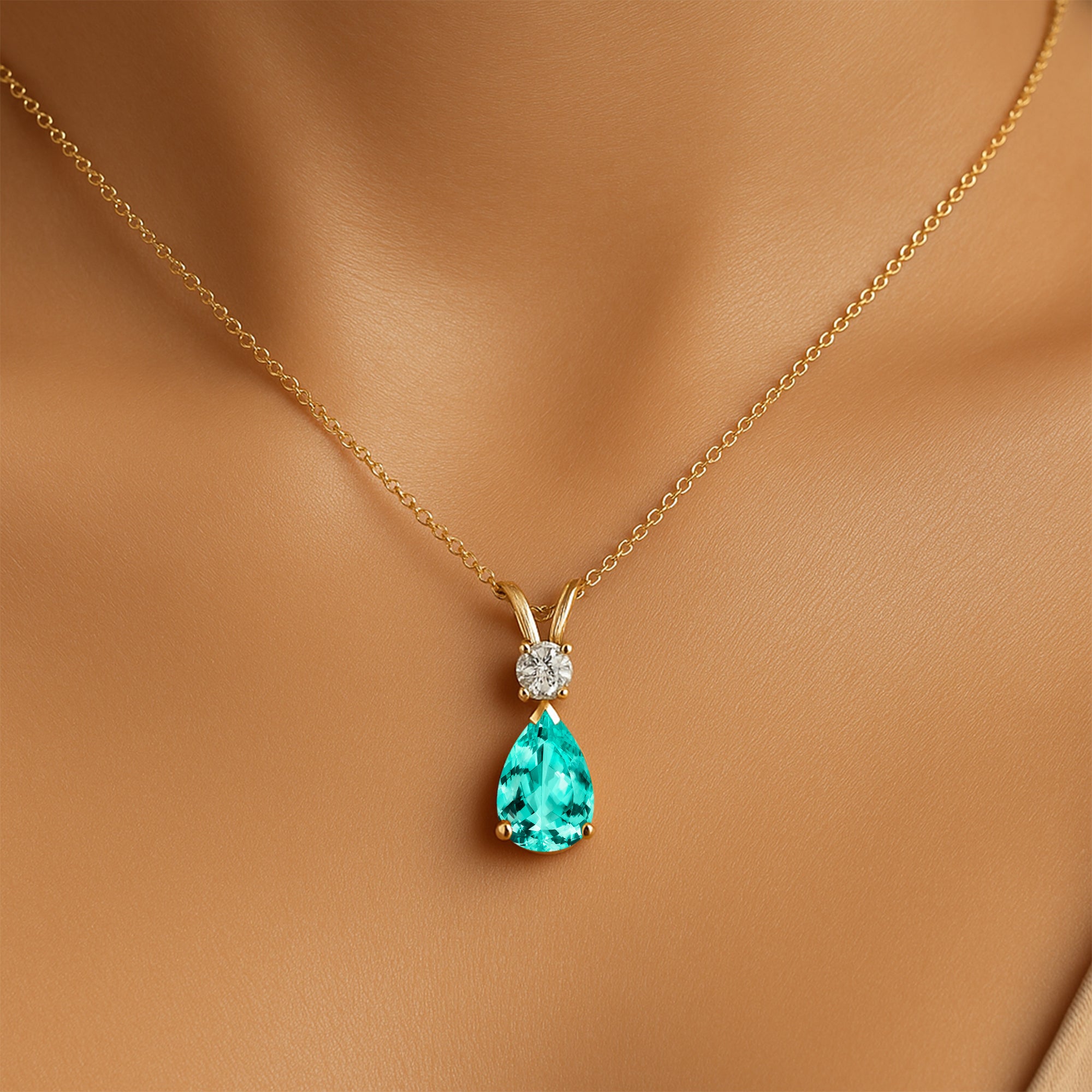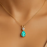 Paraiba Tourmaline Teardrop Pendant with Solitaire Diamond - GeumJewels