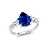 Pear Cut Blue Sapphire with Graduated Diamonds Ring - GeumJewels
