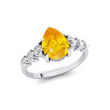 Pear Cut Yellow Sapphire with Graduated Diamonds Ring - GeumJewels