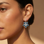 Pear Shaped London Blue Topaz Flower Diamond Leverback Earrings - GeumJewels