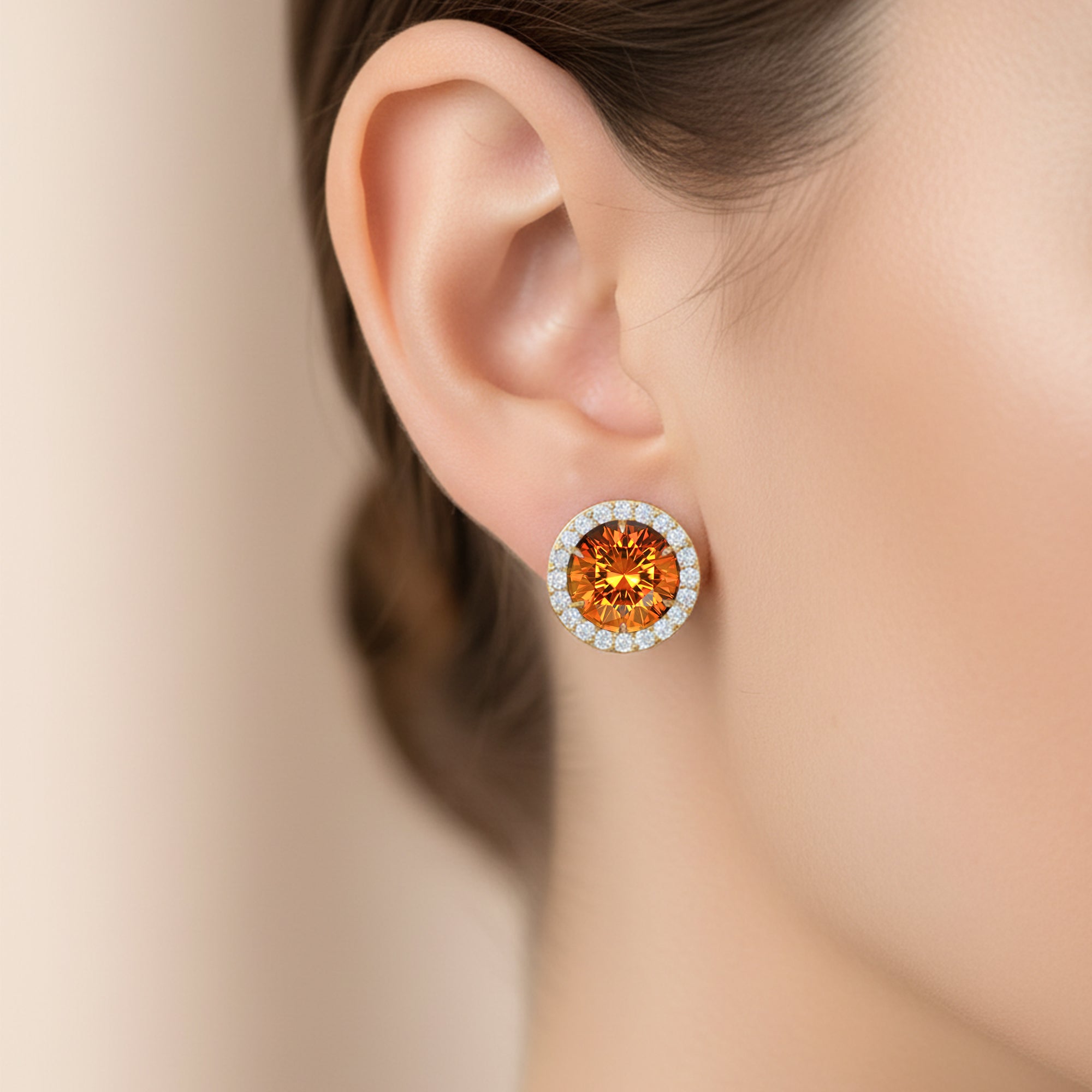 Round Solitaire Citrine Halo Diamond Stud Earrings