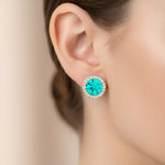 Round Solitaire Paraiba Tourmaline Halo Diamond Stud Earrings - GeumJewels