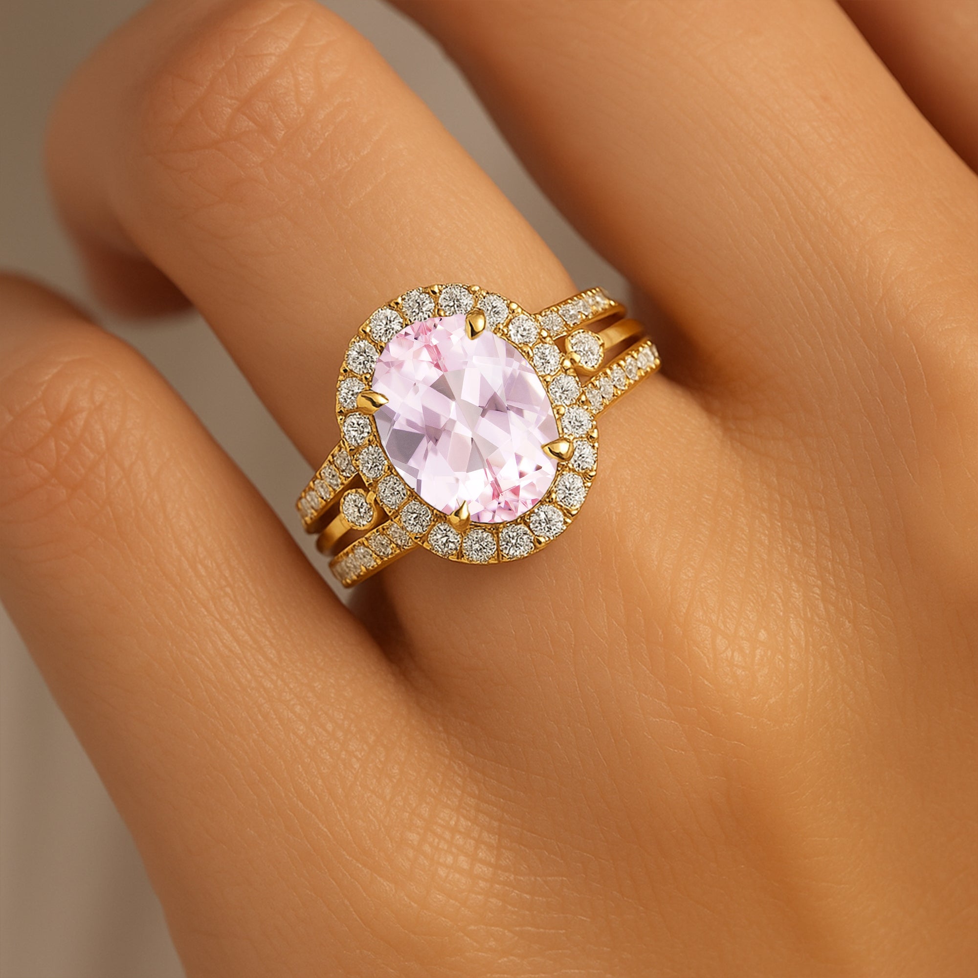 Solitaire Oval Morganite Split Shank Diamond Engagement Ring - GeumJewels