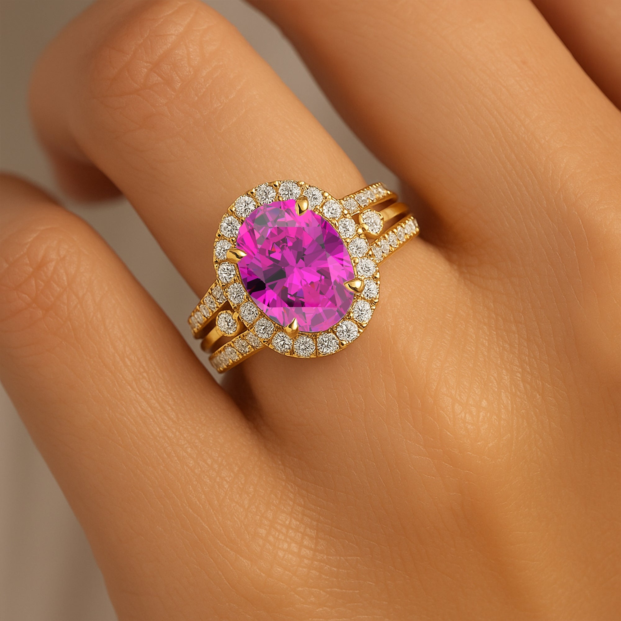 Adorn your love with our Pink Diamond Band—a perfect choice for your girlfriend. Featuring a captivating Pink Sapphire Cut in a 14K Yellow Gold Ring, it's ideal for Valentine Jewelry. Explore the allure of a Halo Engagement Ring with the timeless beauty of a Sapphire Oval Ring. Make a statement with our Gold Engagement Ring, complemented by a Lab Sapphire Band. Choose the perfect Valentine Ring or celebrate with a thoughtful Ring for Birthday. Embrace elegance with enduring style in Yellow Gold Jewelry.